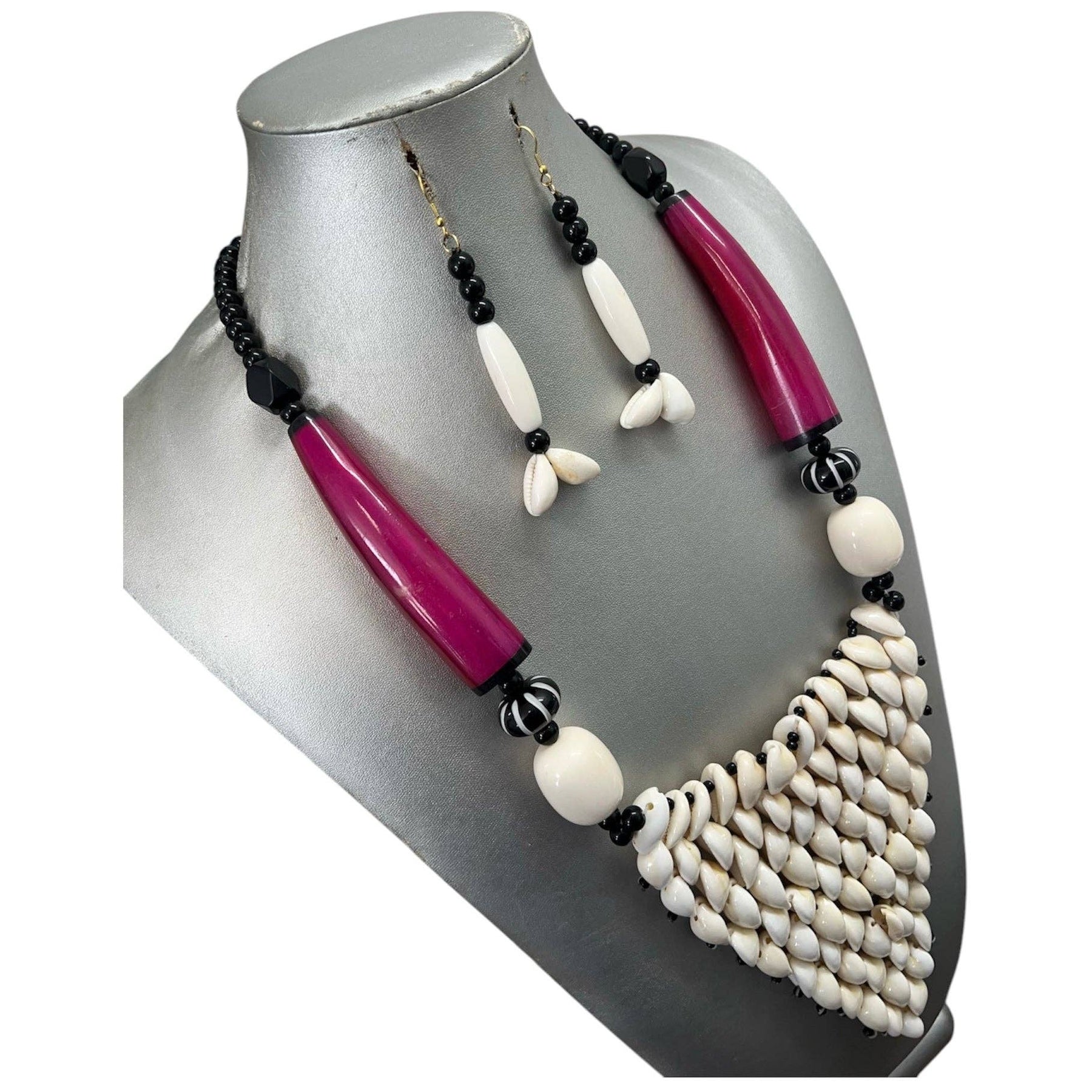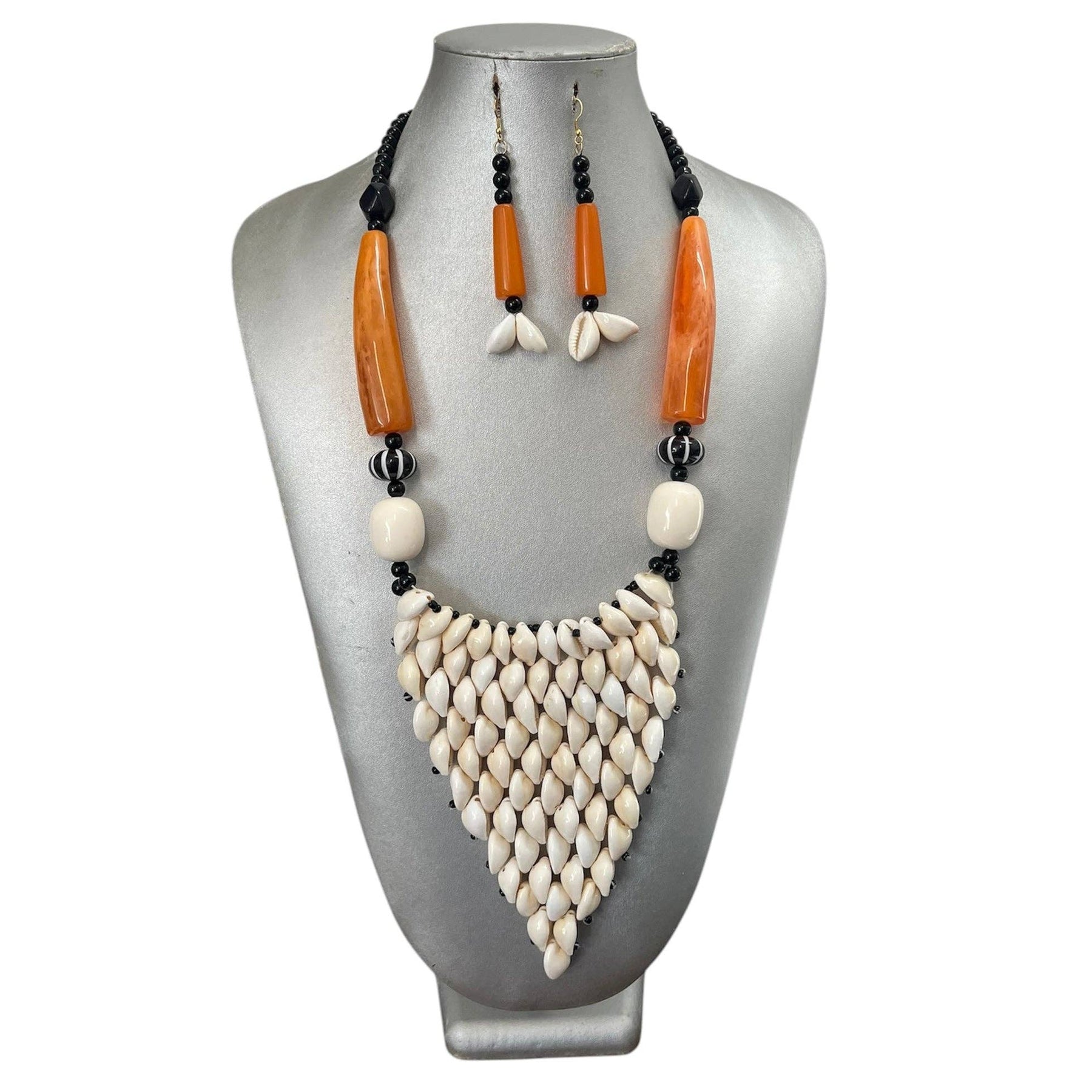 Women's Cowrie Shell Necklace Set with Colorful Stones