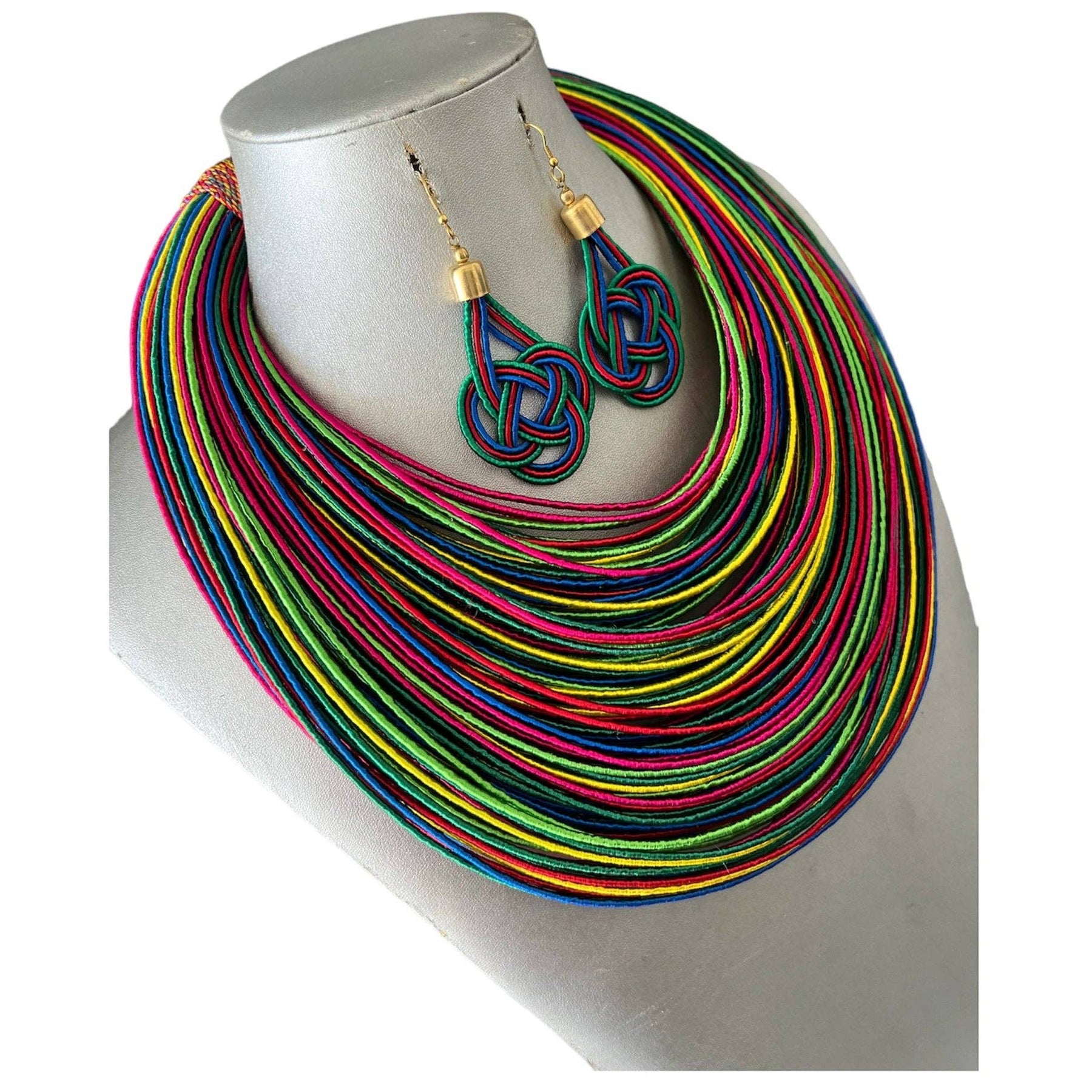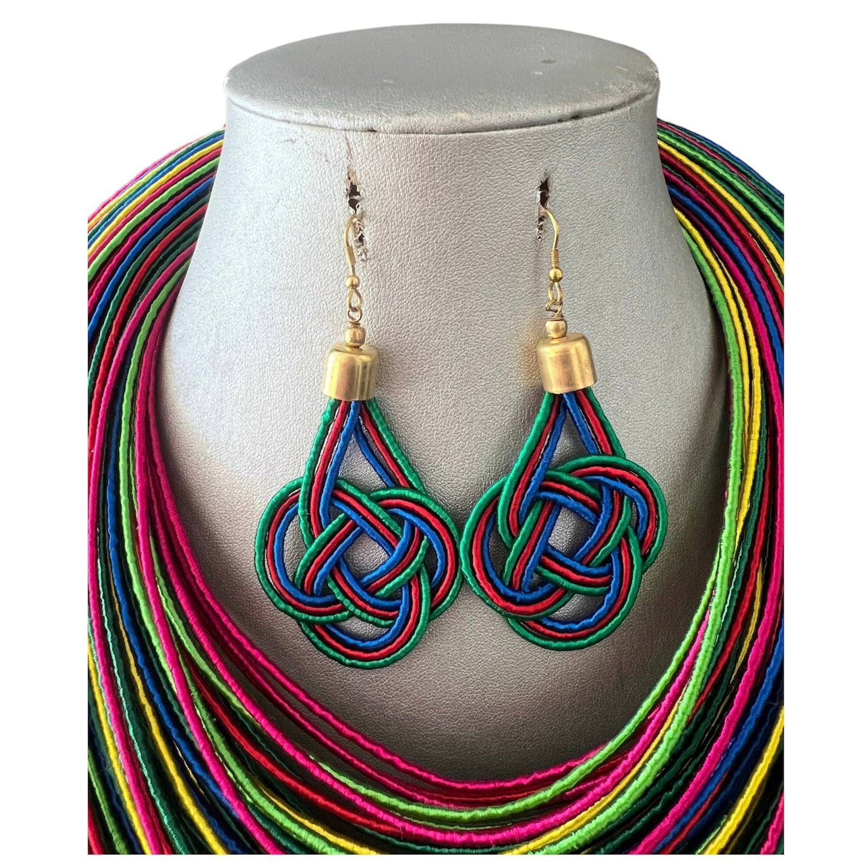 Women's TriColor Layered Necklace with Earrings Set -- 120 Lines