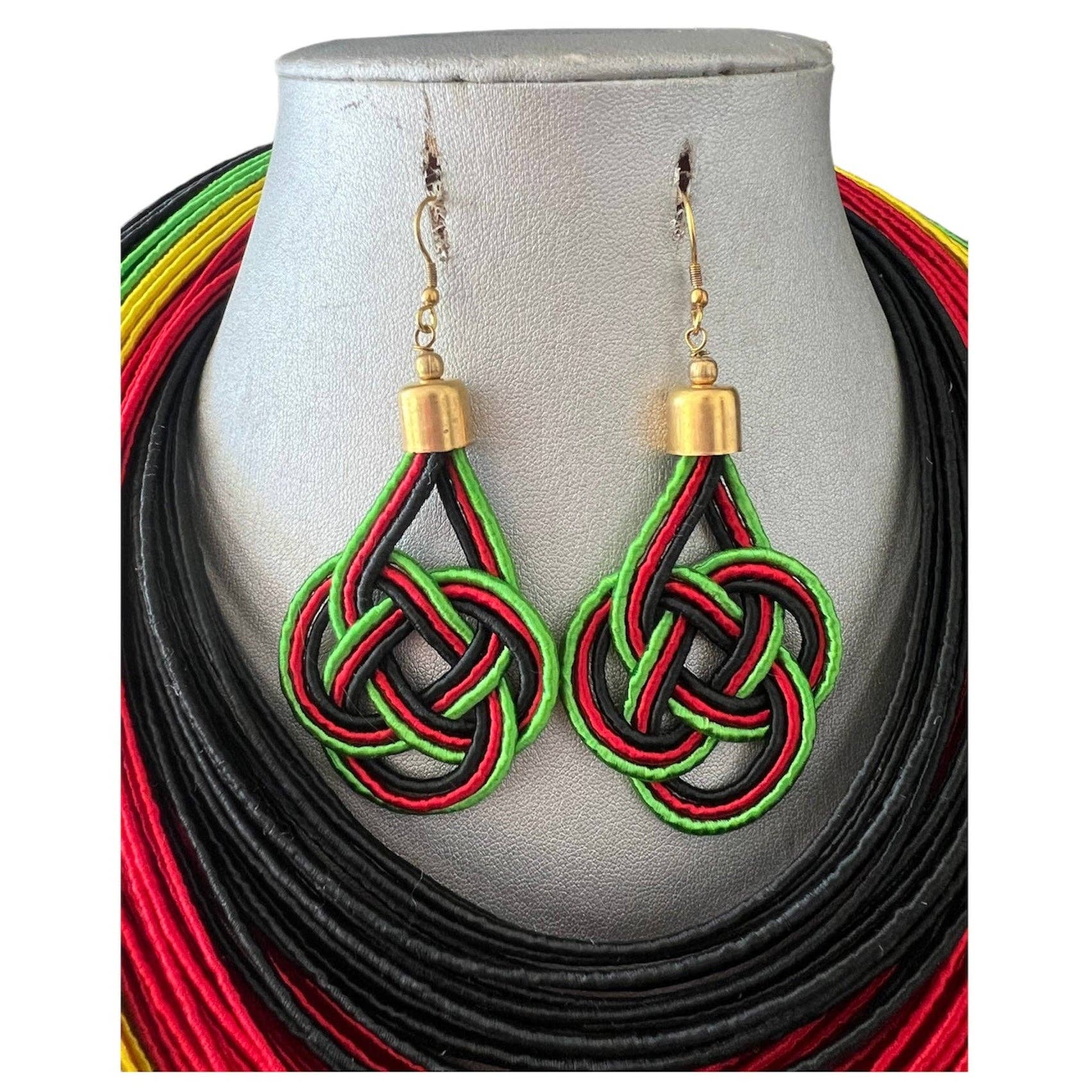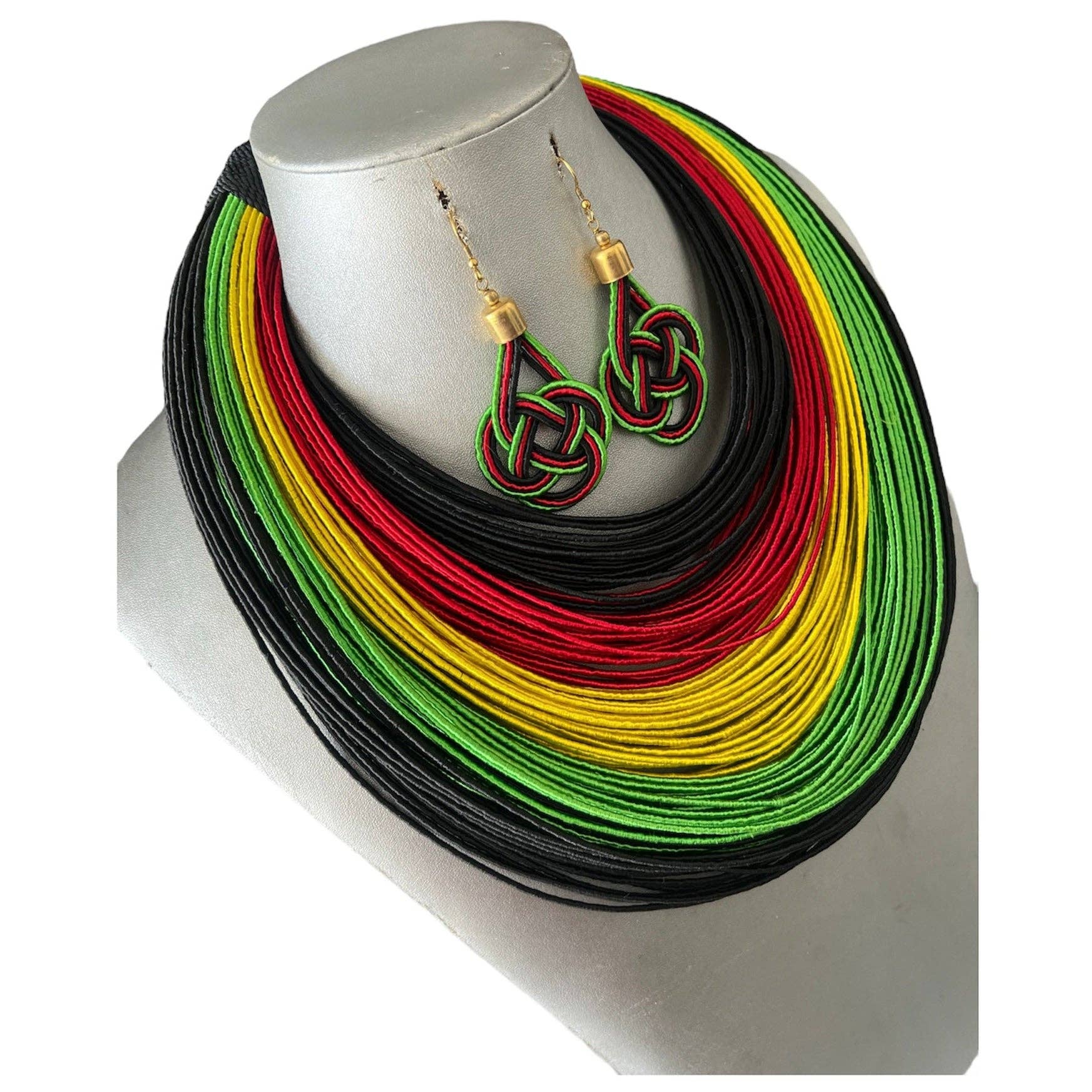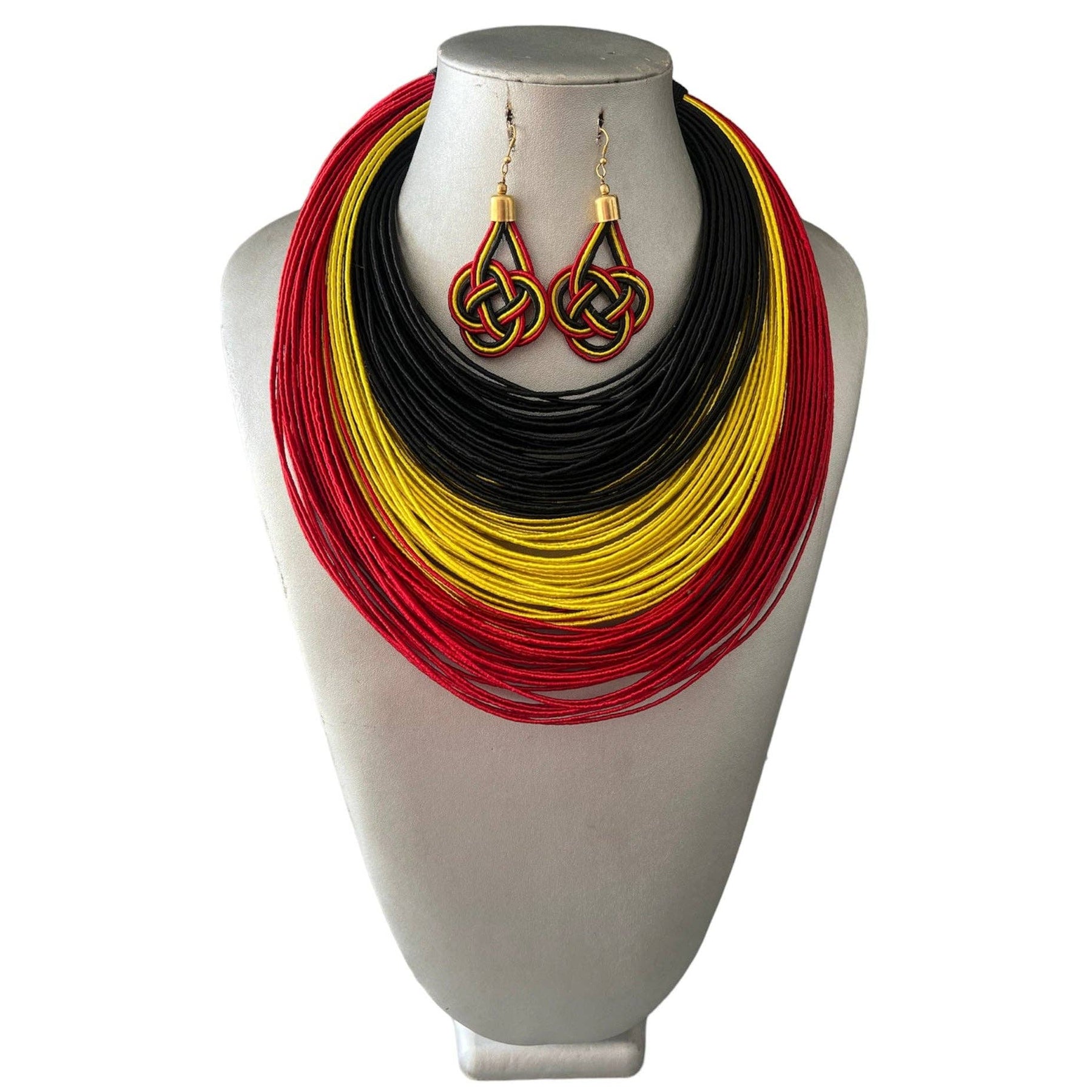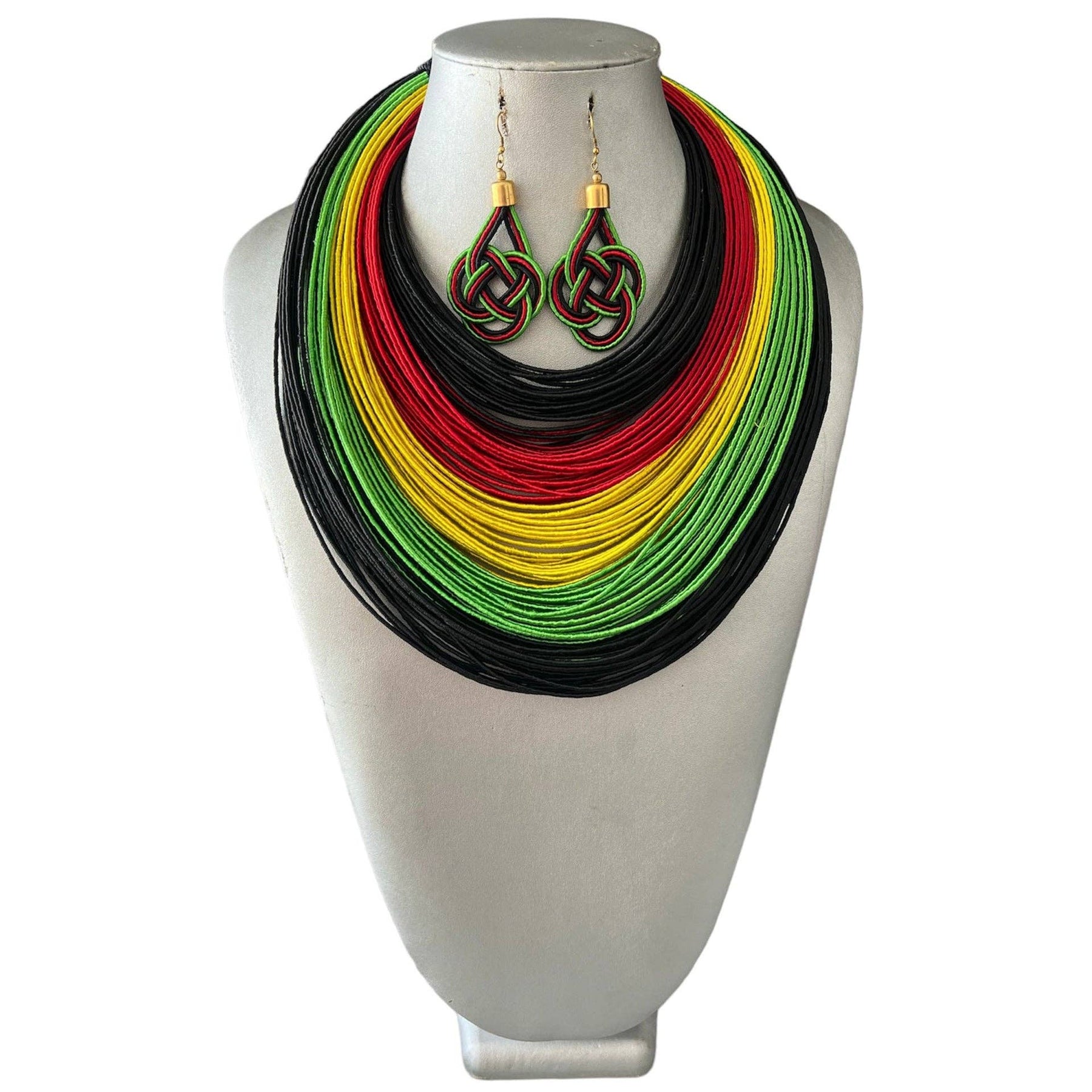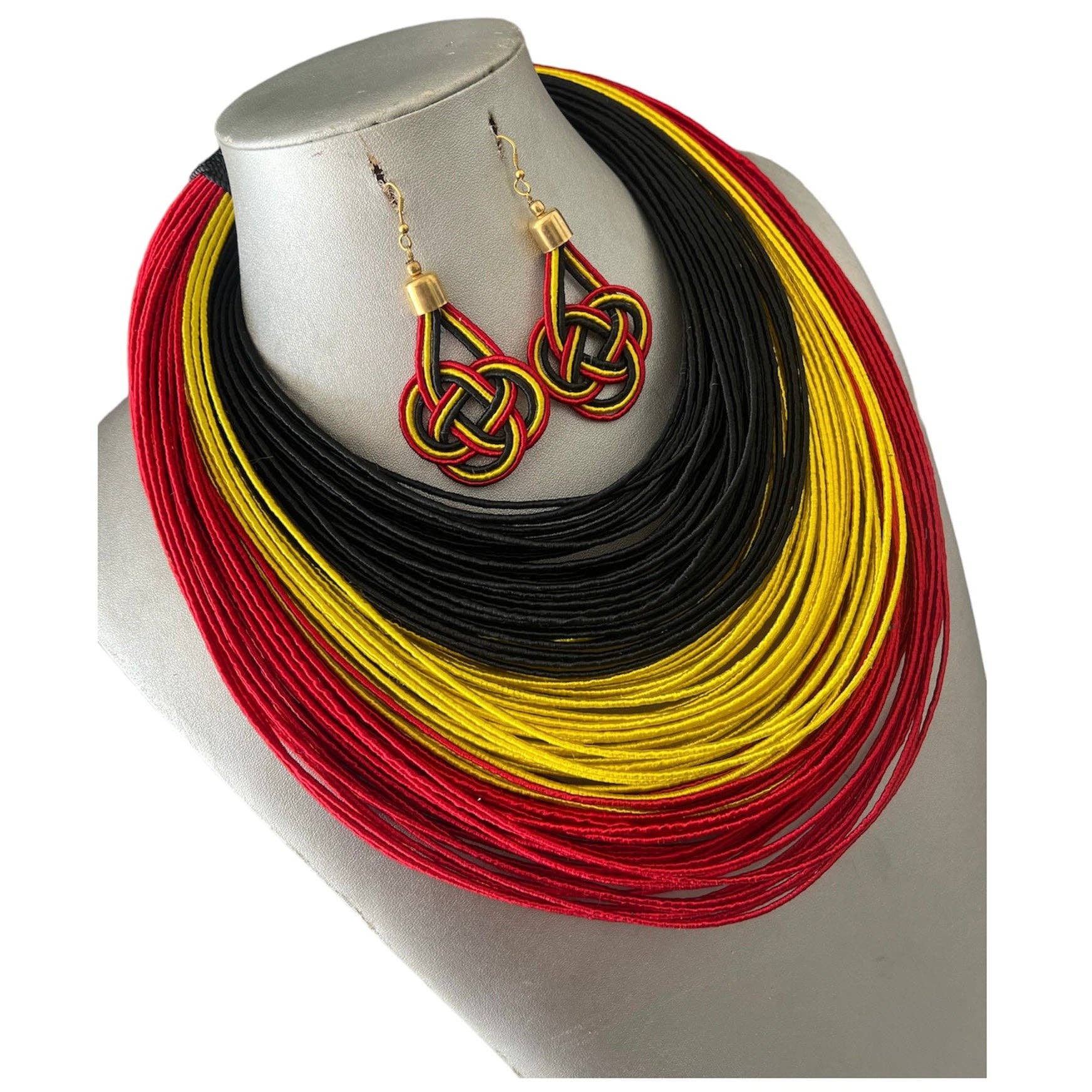 The Women's TriColor Layered Necklace with Earrings Set is a stylish and harmoniously coordinated ensemble of jewelry that artfully blends three complementary colors in a layered design. This set typically includes a necklace featuring multiple layers, each adorned with different but complementary tricolor elements, all of which are harmonized by matching earrings. The tri-color layers create a visually captivating and coordinated look that adds depth and vibrancy to your accessory. Whether you're dressing up for a special event, expressing your love for tri-color aesthetics, or simply seeking a chic and coordinated accessory, the TriColor Layered Necklace with Earrings Set offers a versatile and visually appealing choice. It enables you to make a bold and sophisticated fashion statement, making it perfect for those who appreciate the fusion of harmonious color combinations in their accessories.